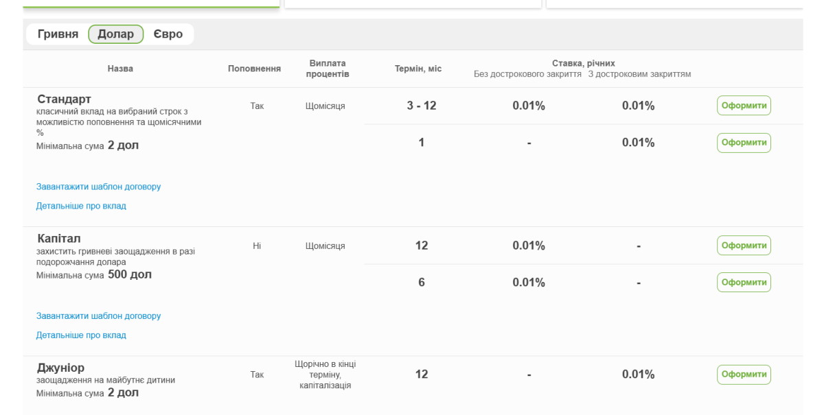 • ставки такі ж низькі – 0.01-0.75% річних;